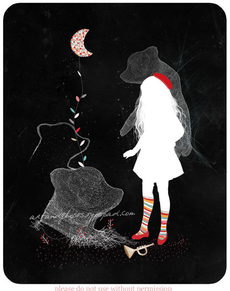It’s impossible for me to highlight all of the works I love — she is quite prolific, our Ghost — but here are a few with which I am smitten. (I’m head over heels with ‘Songs from the Woods’!) All images and content © 2010, Louise Robinson/Art&Ghosts. Please visit her website for more images, for contact information, and — most importantly — details on how to buy some of these gorgeous prints!