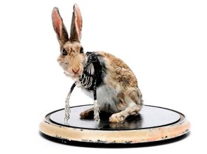 Taxidermied rabbit with solid silver ribcage (by Julia deVille)