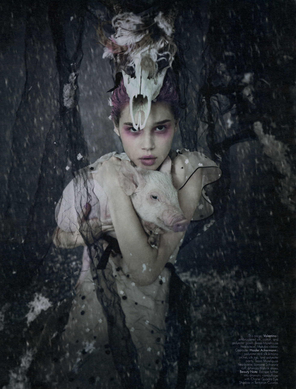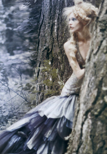 Now, some people may not label fashion photography ‘art’ per se, but when the images are captured by Paolo Roversi’s lens, they can’t be considered anything less. Like Eugenio Recuenco, whom I raved about a few months ago, the aesthetic of Roversi’s portraits really works for me. The overexposed black & whites, the blue tint to the colours, the Romantic / Gothic scenes and costumes — as well as the ‘vintage’ close-ups so reminiscent of 1940s starlet headshots… All so gorgeous. All so inspirational. The tone, mood, setting, vibe — whatever you want to call it — is something I aspire to one day capture in writing.